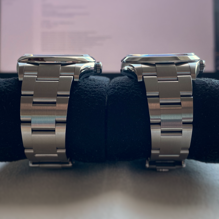 時計単体で見たらまとまりがあるんだけどね。実際着けてみたら本当に目立つ。逆にたった1ミリでそこまで印象を変えるロレのデザインがすごいと言うべきか